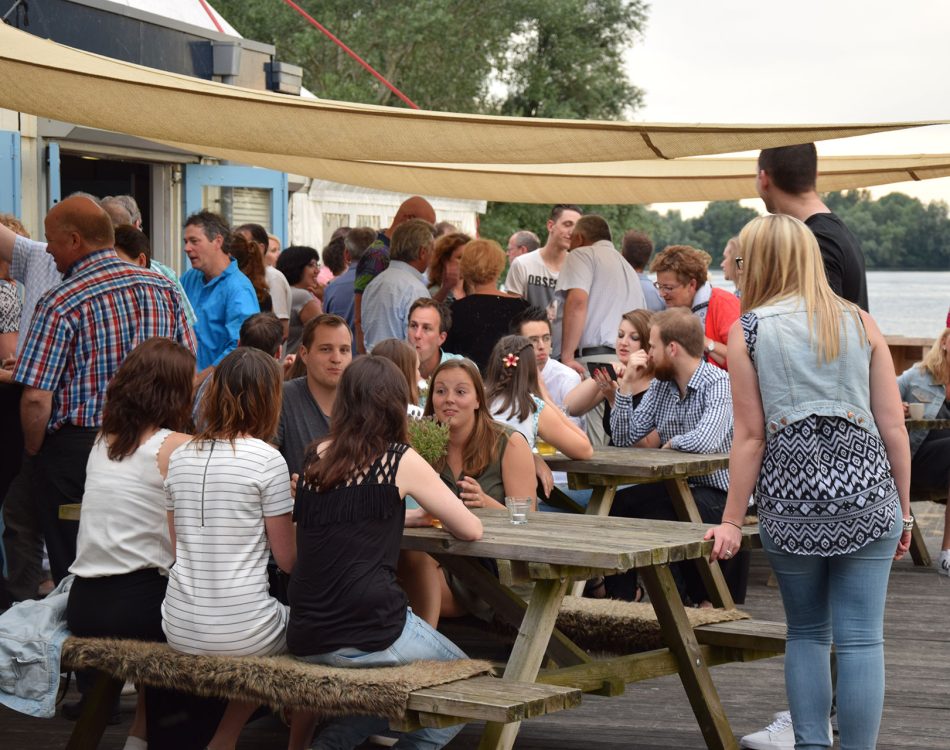 In ons sfeervolle strandpaviljoen met terras met uitzicht op het water kun je terecht met groepen van 20 tot 200 personen of zelfs nog een veelvoud daarvan. Onze locatie is uniek gelegen op de kop van een schiereiland in watersportgebied De Gouden Ham. Dit gebied is gelegen aan de Maas in Gelderland op de grens met Noord-Brabant.