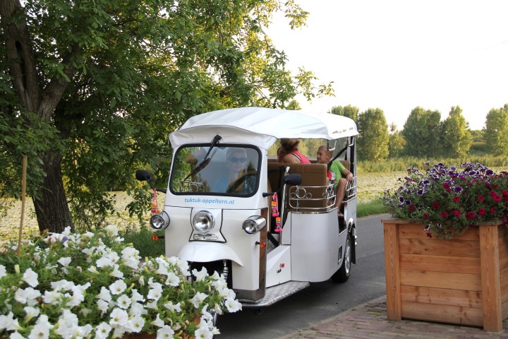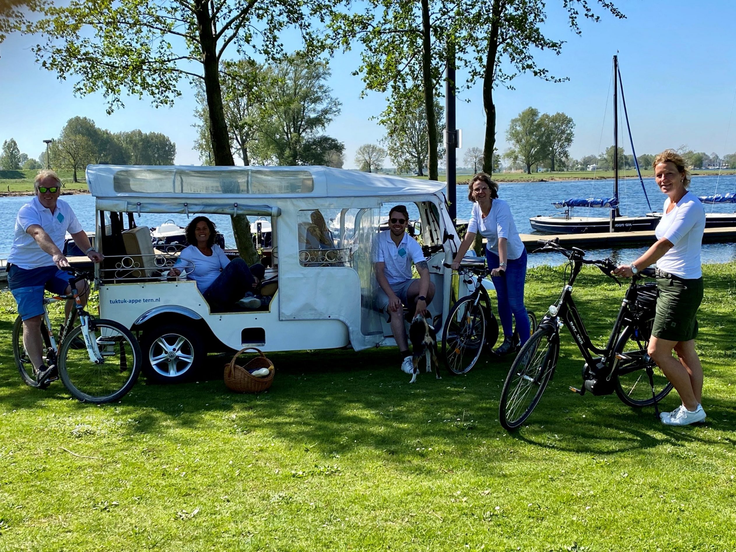 Een tuktuk is elektrisch aangedreven en biedt plaats aan 7 personen. Je krijgt een route mee over de dijkjes en boerenweggetjes in het gebied. Een tuktuk is echt bedoeld om lekker mee rond te toeren en rijd ongeveer 35 km. per uur. Onderweg kun je eventueel een pauze inlassen en genieten van het lekkers uit een van onze picknickmanden.