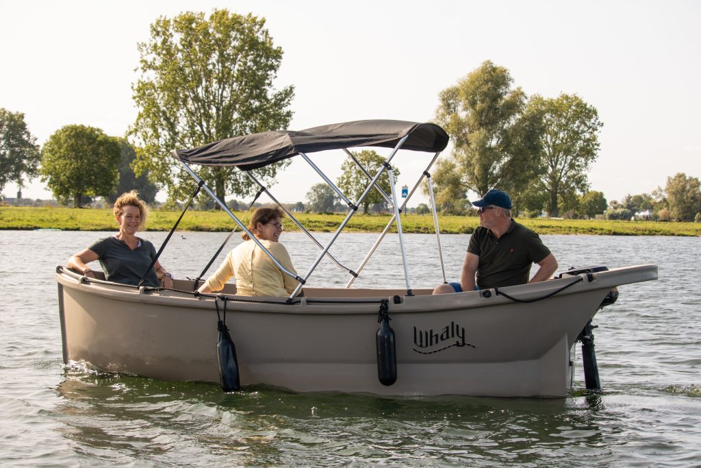 Behalve electrosloepen hebben we ook twee motorsloepen in onze vloot. Deze Whaly Sloep is voorzien van buitenboord motor, zijn eenvoudig te bedienen en bieden een comfortabele plaats aan zeker 6 personen. Een goed idee voor een gezellig dagje op het water.